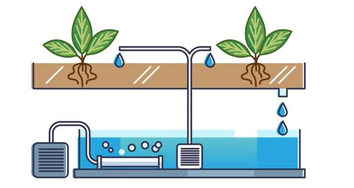 → Ein unkompliziertes Ebbe- und Flutsystem, das durch eine Pumpe geflutet wird. Nach jedem Pumpzyklus fließt dabei die Nährlösung automatisch zurück in den darunter liegenden Tank. Die Pumpintervalle werden zeitgesteuert eingestellt.