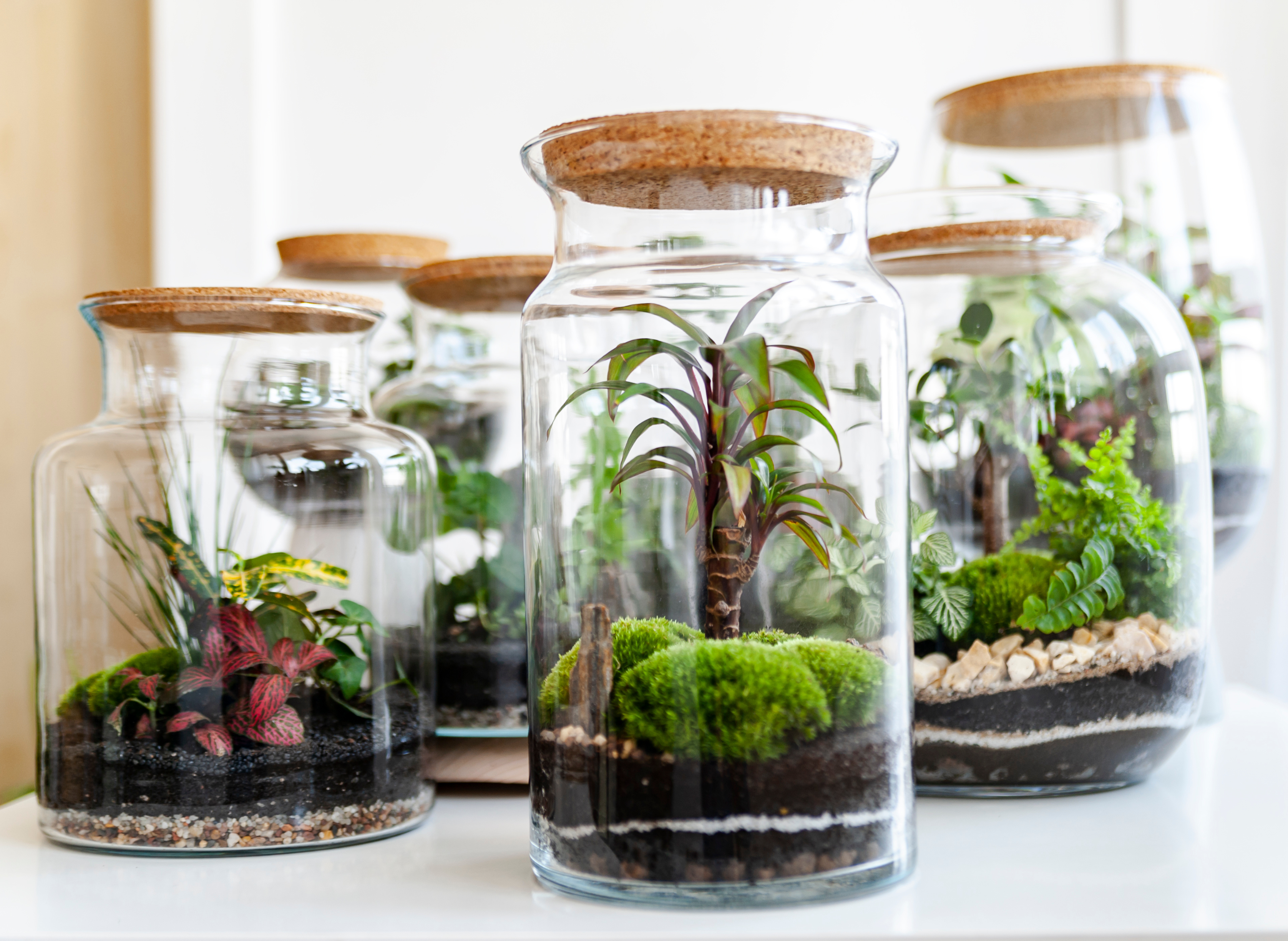 Terrarien: Terrarien sind geschlossene oder halb geschlossene Glasbehälter, die eine feuchte Umgebung für Pflanzen schaffen. Sie eignen sich besonders gut für Pflanzen, die hohe Luftfeuchtigkeit benötigen, wie Farne und Moose.