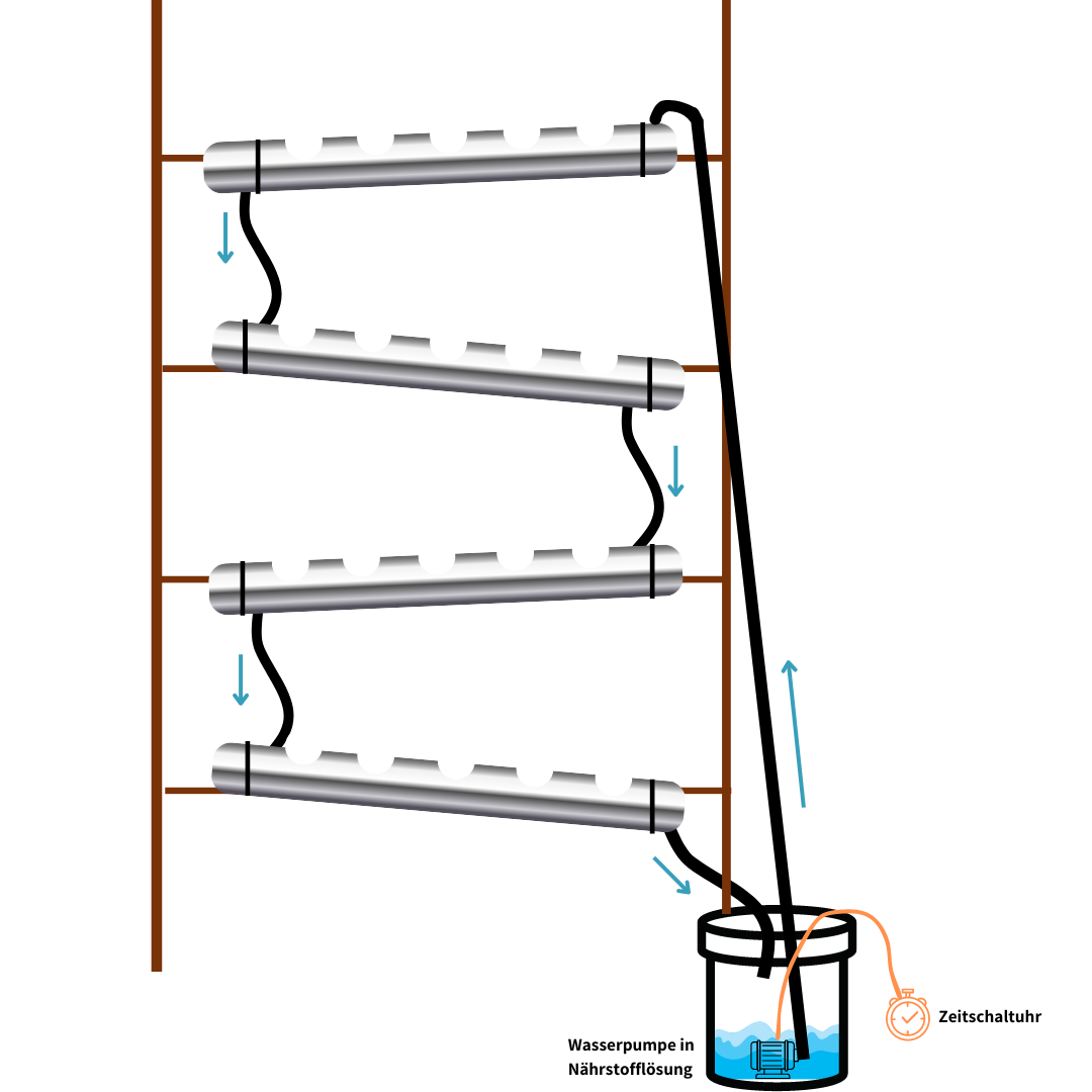 Tip: To make things easier for yourself, it is best to work with a timer. Use short intervals with short pumping times to prevent overflow, as the plants will form larger roots that could clog the hoses. With frequent and short-term watering, the water may still be able to flow completely through the system.