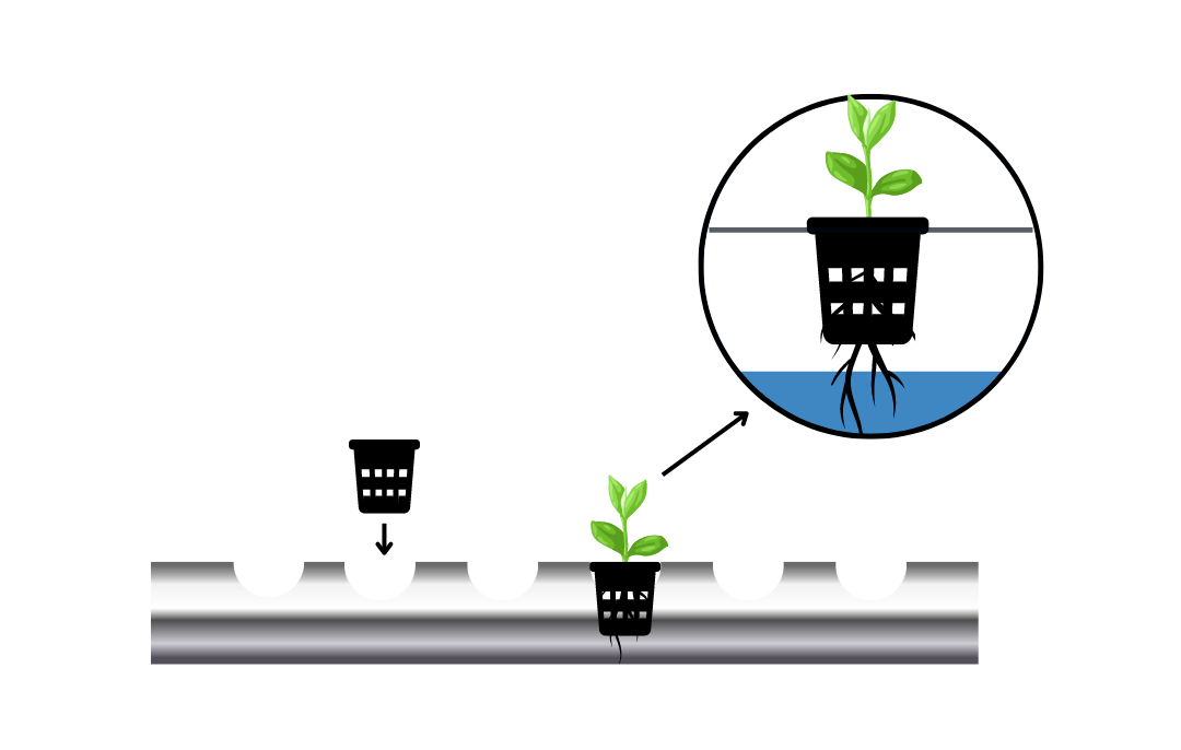 Info: The goal should be to allow the bottom of the net pots to hang completely in the tube without leaving too much space between the bottom of the net pot and the tube. So make sure the holes are big enough to comfortably accommodate your net pots and allow the roots of the plants to hang freely in the nutrient film.