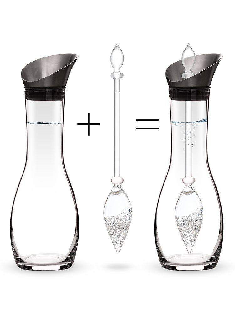 Durch ein patentiertes Verfahren scheint der Edelsteinstab schwerelos zu schweben. In Kombination mit der gezielten Wasserenergetisierung entsteht ein außergewöhnlich reines, energetisches Trinkerlebnis.