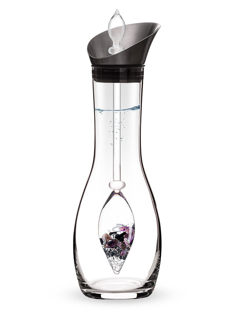 Der Edelsteinstab wird in einem patentierten Verfahren mundgeblasen und scheint fast schwerelos in der Karaffe zu schweben. So entsteht durch gezielte Wasseraktivierung ein Trinkwasser, das dich stärkt, schützt und zentriert.