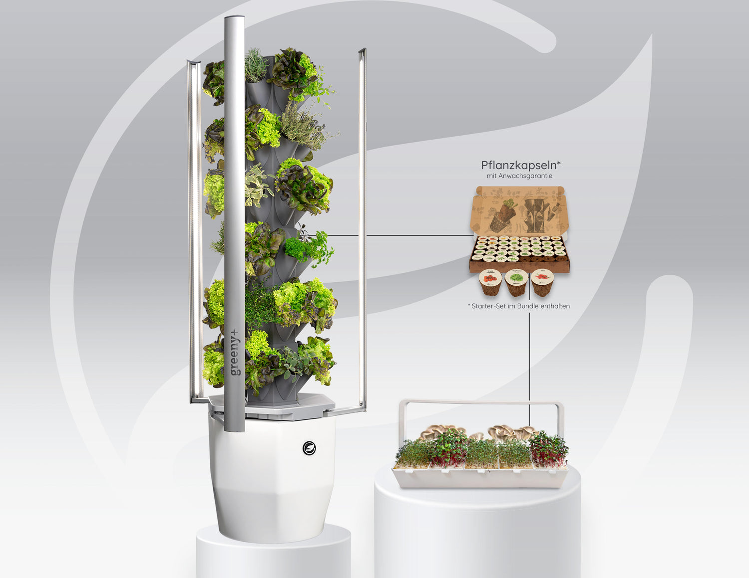 Das greenyBUNDLE PRO ist die ideale Kombination für alle, die frische Lebensmittel selbst anbauen und dabei auf Nachhaltigkeit und Effizienz setzen. Zwei unserer beliebtesten Produkte sorgen für maximale Pflanzenkraft – und die elegante Edel-Wasserkaraffe - Era Set | WELLNESS (1,3 Liter) gibt’s kostenlos dazu.