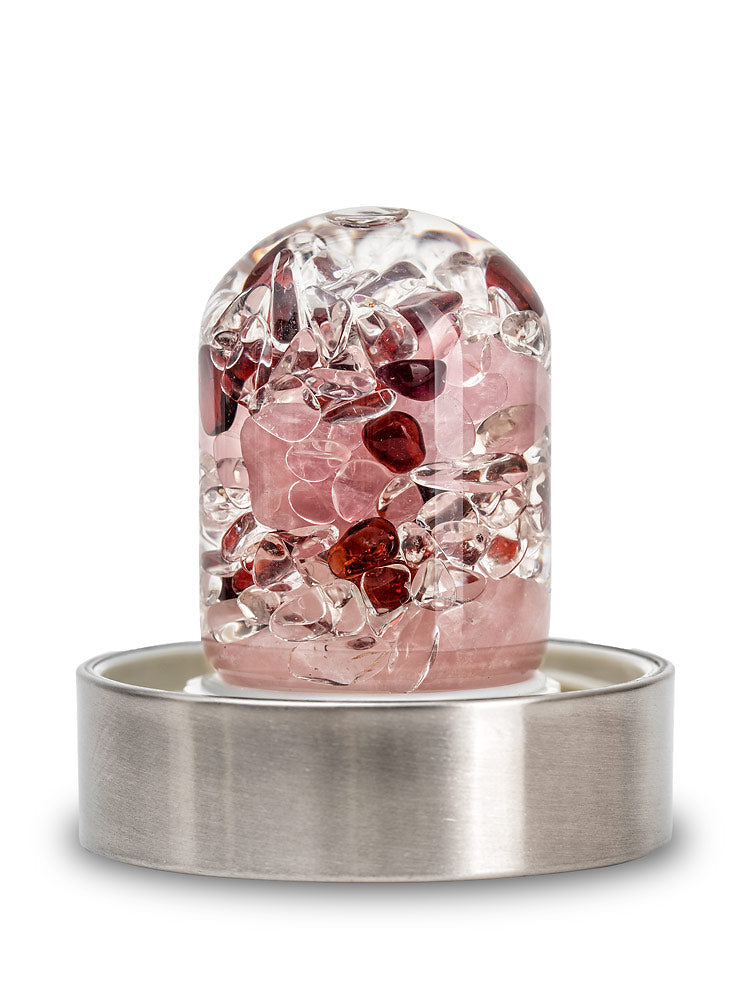 Rosenquarz symbolisiert Zärtlichkeit, Mitgefühl und Romantik, während der Granat mit Leidenschaft und Zuversicht wirkt. Zusammen entfalten sie eine emotionale Tiefe, die dich mit jedem Schluck begleitet – voller Wärme, Nähe und Kraft.