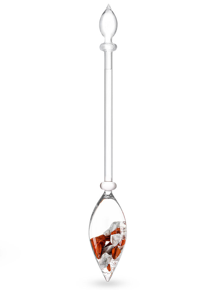 Gegensätze ziehen sich an: In dieser Mischung treffen die stärkenden Eigenschaften des roten Jaspis auf die entspannende Wirkung des Magnesits – beide vereint durch die klärende Kraft des Bergkristalls.