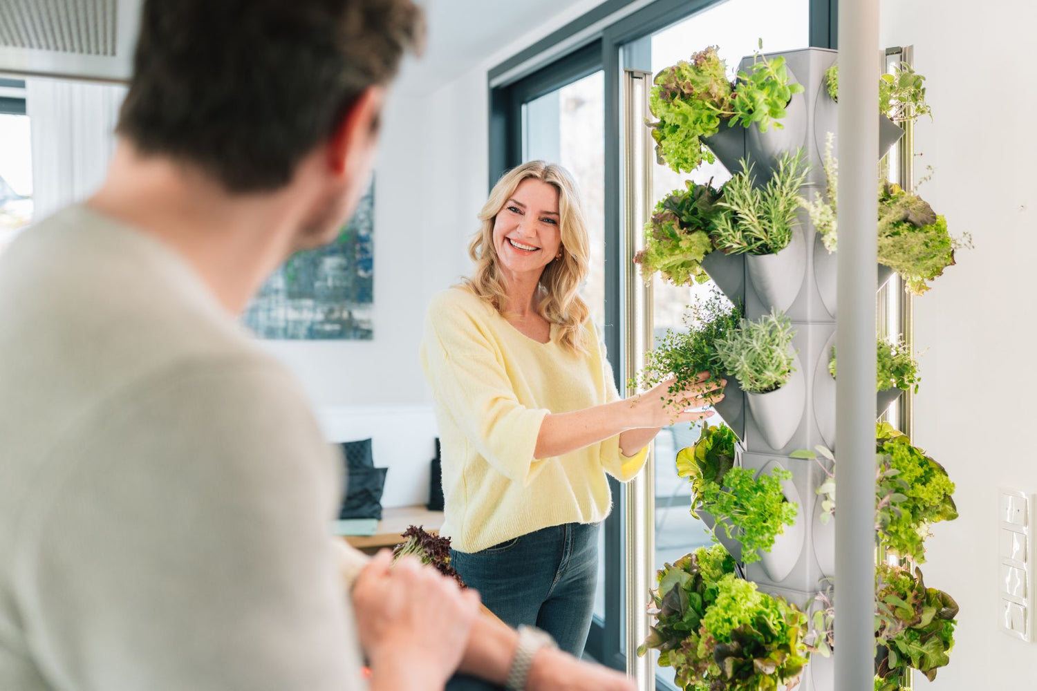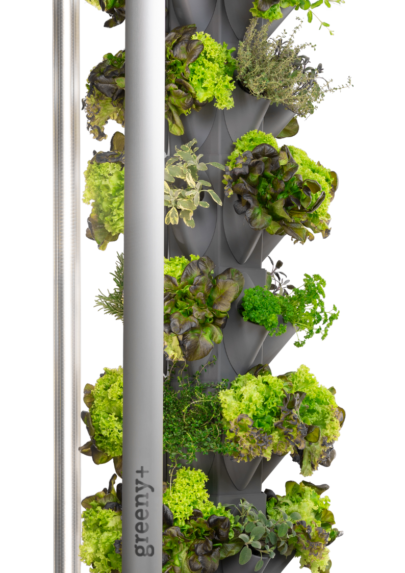 Der greenyGARDEN HOME ist ein innovativer Indoor-Pflanzturm, der es dir ermöglicht, täglich frisches Gemüse, Kräuter und ausgewählte Obstsorten in Demeter-Qualität direkt in deinem Zuhause zu ernten.